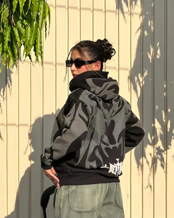 LZRUS Tribal Shadow Depth Hoodie for Women – Where Street Culture Meets Art